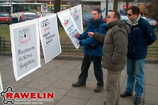 11 grudnia 2005r. członkowie Małopolskiego Stowarzyszenia Miłośników Historii "Rawelin" wzięli udział w manifestacji przeciwko planom nadbudowy fortu 31 św. Benedykt i budowie parkingu na 300 samochodów we wnętrzu Wzgórza Lasoty. Akcje protestacyjną na Rynku Podgórskim zorganizowało Stowarzyszenie "podgórze.pl. To była ostatnia szansa by wyrazić społeczny sprzeciw wobec tej inwestycji. W wydziale architektury miasta leży już wniosek o pozwolenie na budowę.