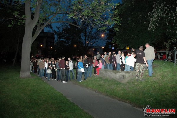 Rawelin miał zaszczyt uczestniczyć w niej już po raz trzeci. Schron w parku Krakowskim odwiedziło ok. 1260 osób! Tradycyjnie – długa kolejka zaczęła ustawiać się już przed 19, a wąskie korytarze prawie non stop były „zakorkowane” przez pasjonatów historii placu Inwalidów i podziemnego zwiedzania. Dotychczas biletem wstępu do wszystkich muzeów była specjalnie wybita na tę okazję pamiątkowa moneta, w symbolicznej cenie: 1 złoty, która upoważniała do nieograniczonego wstępu do wszystkich placówek muzealnych biorących udział w projekcie. W tym roku wstęp do muzeów był bezpłatny, a monetę – jako pamiątkowy gadżet – można było nabyć za symboliczną złotówkę. W naszym schronie pamiątkowe monety zostały sprzedane w ciągu pół godziny, na pocieszenie zostały tylko bilety uprawniające do bezpłatnych wieczornych i nocnych przejazdów komunikacją miejską. Jak zwykle też – nasz agregat zbuntował się po kilku godzinach pracy i to aż trzykrotnie. Choć niektórzy poczuli się w ciemnościach niepewnie, na szczęście obyło się bez paniki, a paliwo udało się uzupełnić w miarę szybko.