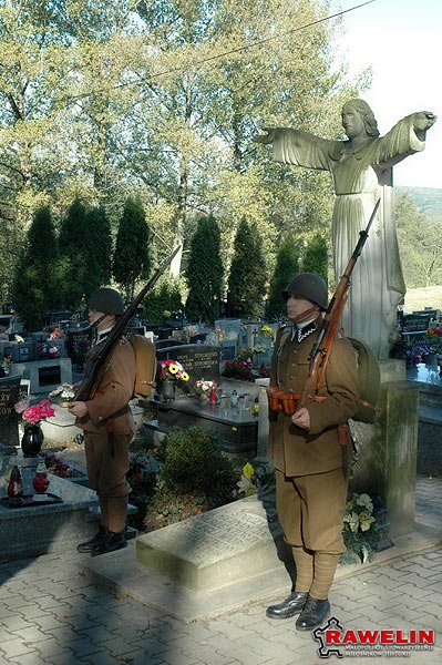 Po długich przygotowaniach, w drugą sobotę października zaprosiliśmy mieszkańców gminy Zabierzów i wszystkich zainteresowanych fortyfikacjami drugowojennymi do naszego schronu Regelbau 668 w Rudawie. Zaczęliśmy jednak od złożenia kwiatów i zapalenia zniczy na cmentarzu w Rudawie - pod pomnikiem Ofiar Pacyfikacji Radwanowic i na mogile żołnierzy polskich poległych we wrześniu 1939 roku. Wartę honorową przy ich grobie wystawili członkowie Sekcji Polskiej SRH Wrzesień '39.
