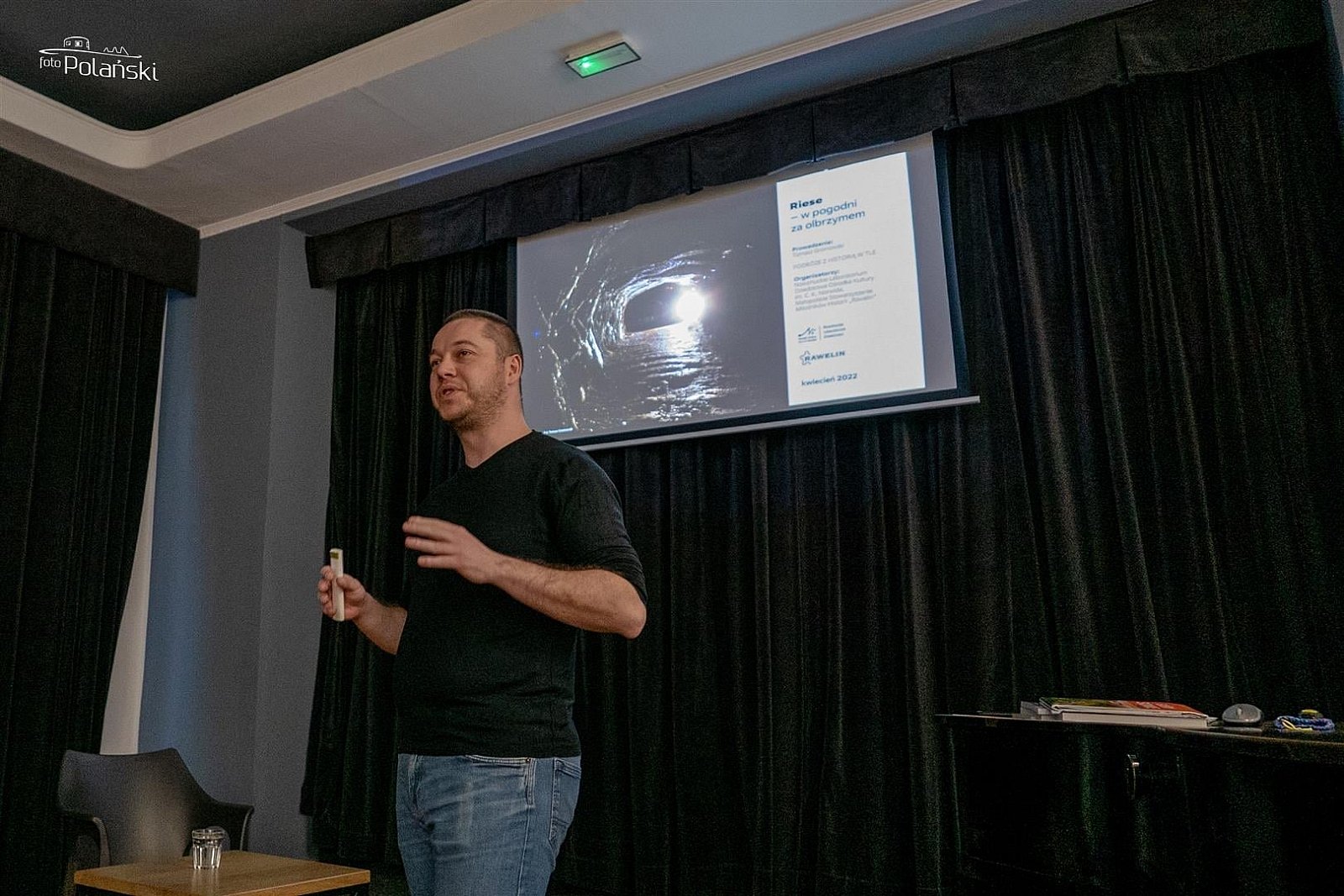 Dzisiejsze nasze spotkanie z cyklu "Podróże z historią w tle" poświęcone było tajemnicom Riese. O faktach i mitach związanych z tym tajemniczym obiektem inżynierskim z końca II Wojny Światowej opowiadał i zdjęcia prezentował Tomek Gromowski-nasz wspaniały, "pozyskany" ze Szczecina eksplorator. Tym razem z mojej strony szczególne brawa i uznanie za ubiegłoroczne zwiedzanie wymienionych obiektów kompleksu Riese … piechotą