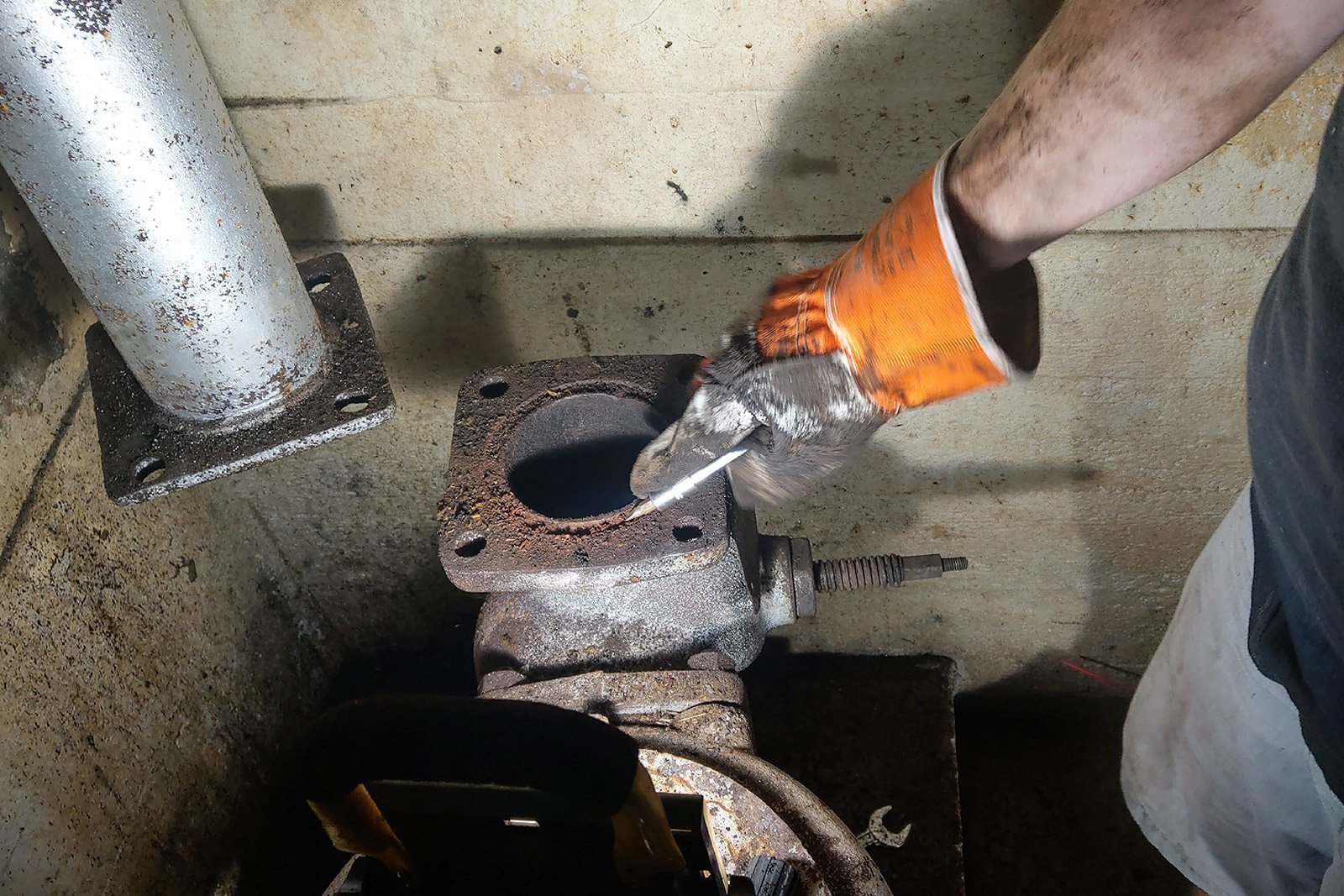 Zbliża się upalne lato to trzeba zacząć dogrzewać schron w Rudawie. Do tego potrzebny jest sprawny niemiecki piec WT80K i cug. A tu cugu nie ma… Ekipa kominiarzy w składzie Darek i Szymon przeprowadziła dzisiaj sprawną akcje przepychania rury i znowu z komina uniósł się dym zwiastując początek sezonu grzewczego w naszym schronie.